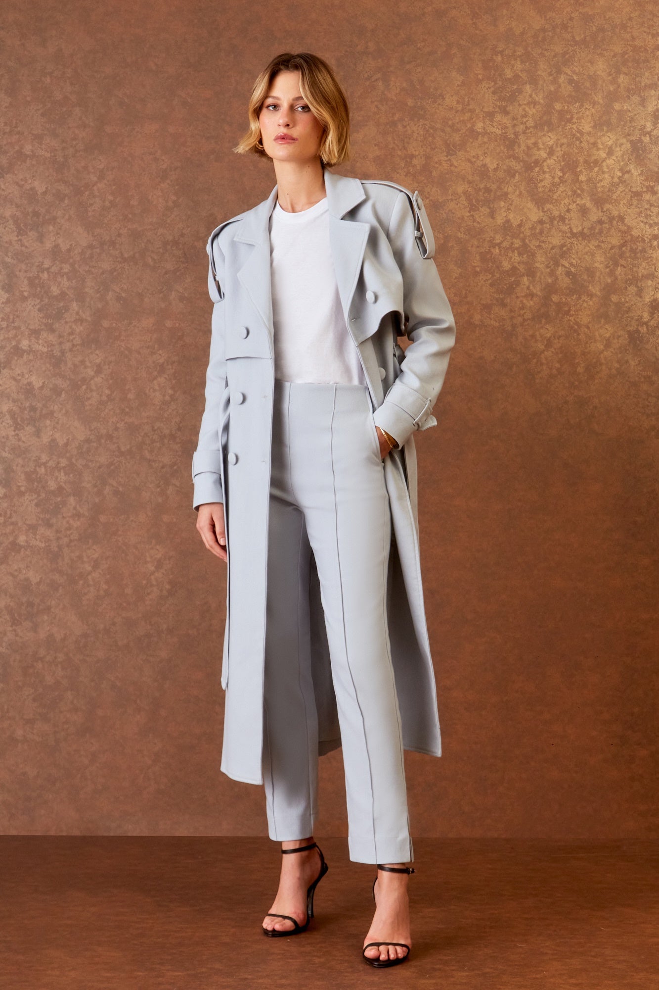 O detalhe da pequena fenda na barra acrescenta movimento e sofisticação ao design da calça. Esse toque especial oferece versatilidade, permitindo combinações com diversos estilos de calçados.