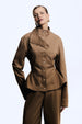 Casaco curto em sarja traz uma elegância moderna com sua modelagem estruturada e levemente acinturada, que valoriza a silhueta. A barra ampla adiciona movimento e um charme contemporâneo à peça. O fechamento por botões frontais internos garante um visual limpo e minimalista, enquanto o detalhe sobreposto na gola, com botão forrado, acrescenta sofisticação discreta. Uma peça versátil e refinada.