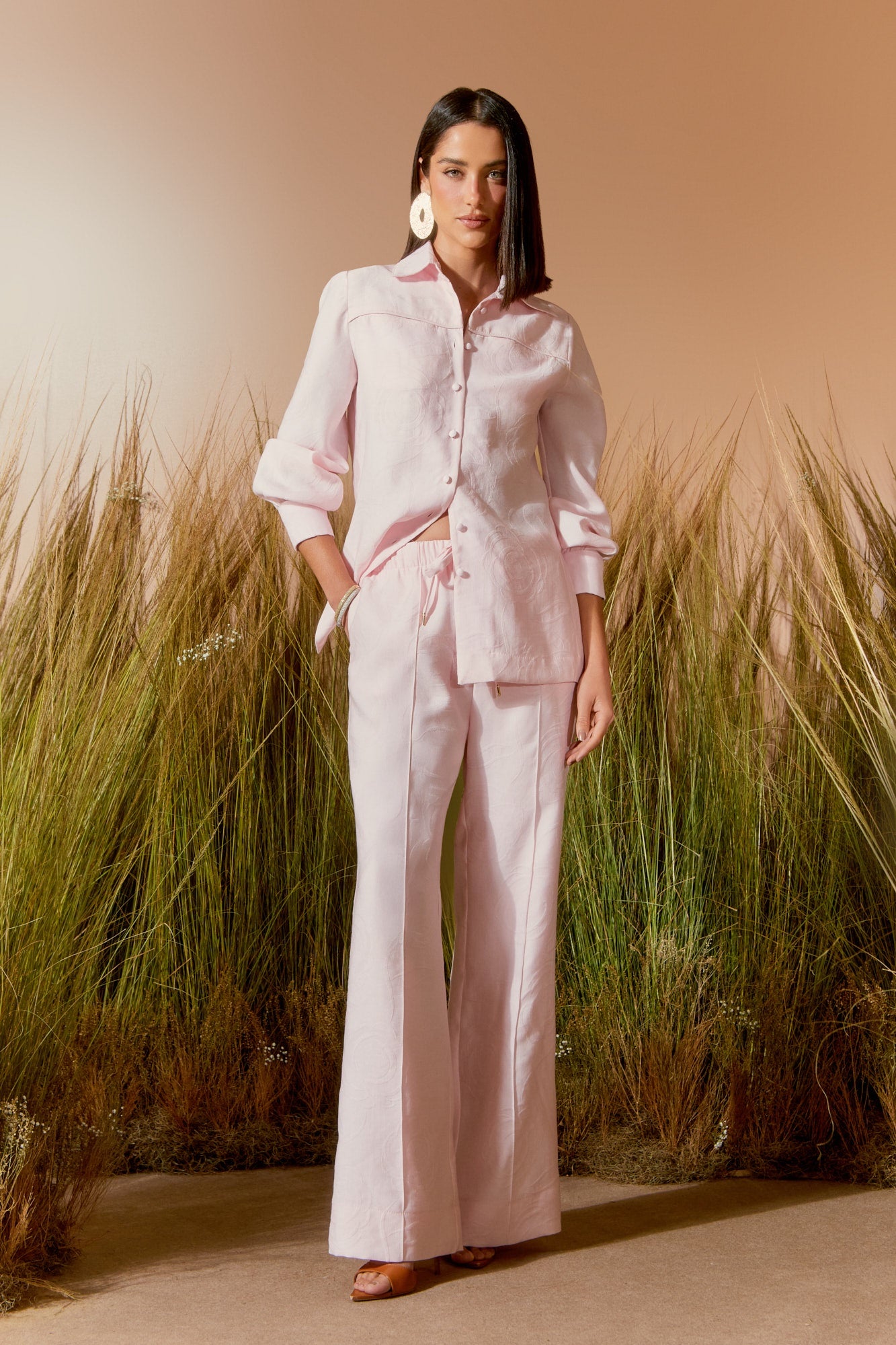 O conjunto permite combinações coordenadas ou peças separadas, oferecendo praticidade sem abrir mão da elegância. Ideal para quem busca uma produção completa e moderna.