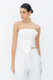 Cropped Confeccionado em Compact Cotton na cor Off White. A peça possui caimento ajustado ao corpo, modelo tomara que caia estruturado e barra assimétrica.