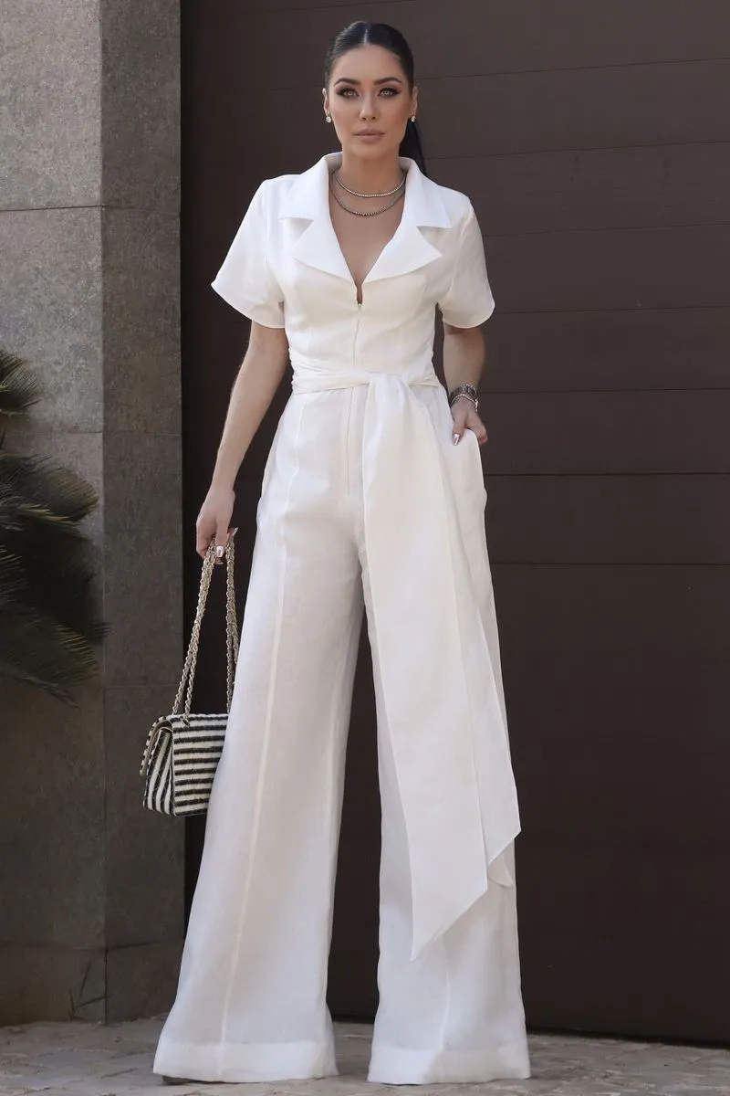 MACACÃO MANGA CURTA COM BOLSOS LATERAIS E AMARRAÇÃO COLEÇÃO VERÃO 25