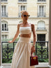 Top com toque elegante e frescor moderno. Feito em modelagem frente única, traz alças finas com regulador e camadas sobrepostas no busto que dão charme e movimento. Nas costas, as tiras delicadas permitem amarração ajustável, garantindo caimento perfeito e visual sofisticado com leveza.