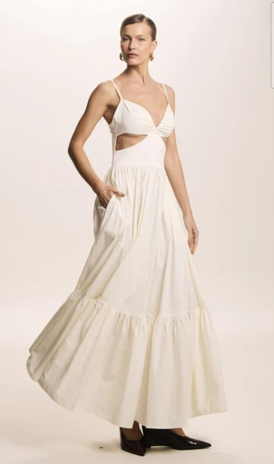 Vestido com caimento fluido e recortes que valorizam a silhueta, traz elegância moderna na medida certa. O busto com recorte frontal cria charme sutil, enquanto as aberturas laterais alongam a cintura com leveza. As alças finas e o corpo ajustado contrastam com a saia ampla e esvoaçante, resultando em uma peça feminina, fresca e impecável.