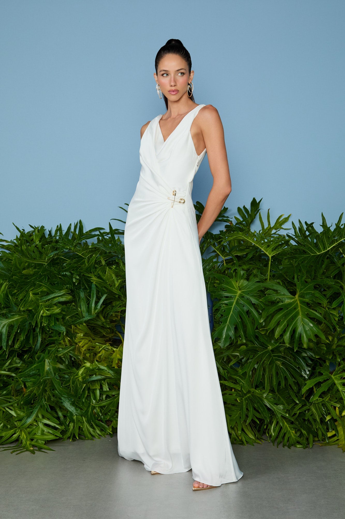 VESTIDO LONGO MARCELA ALFINETES COLEÇÃO VERÃO 26