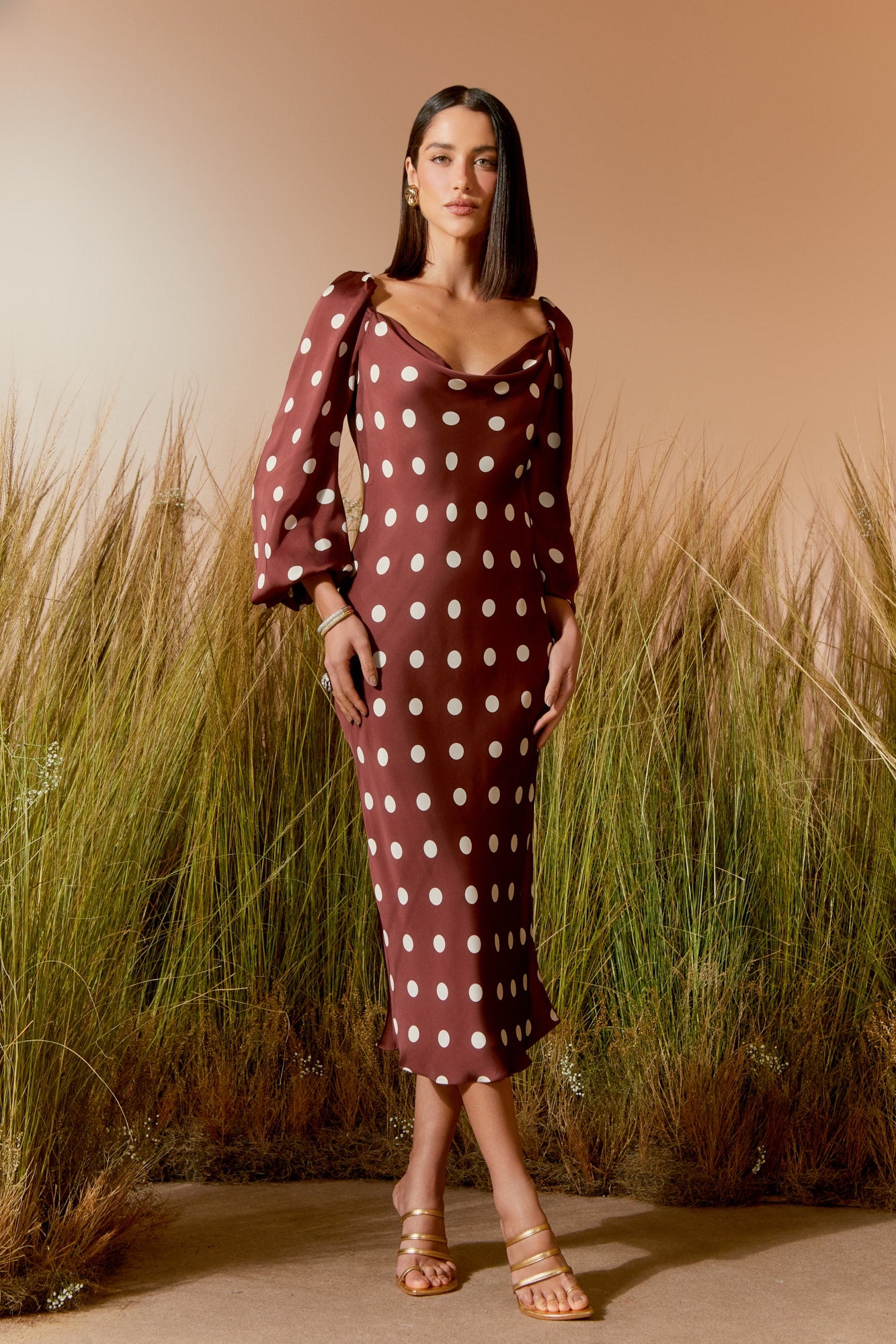 VESTIDO MIDI DEGAGE POA CACAU COLEÇÃO VERÃO 26