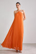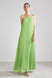 Vestido longo confeccionado em chiffon plissado com shape fluido e elegante. Possui decote halter com alças finas que se cruzam na frente, trazendo sofisticação e delicadeza ao colo. O caimento leve garante movimento e um visual etéreo, perfeito para eventos que pedem um look mais fresh e refinado. A parte traseira segue o design leve com caimento solto, revelando as costas parcialmente à mostra, em um decote reto. As alças são ajustáveis, proporcionando melhor sustentação e conforto. O plissado continua por toda a extensão da peça, valorizando a fluidez do tecido e conferindo charme extra ao visual.