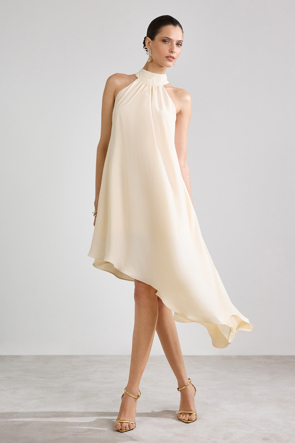 Elegante e cheio de charme, este vestido curto em crepe é a escolha ideal para quem busca um visual sofisticado com um toque moderno. Com modelagem solta e fluida, a peça possui decote assimétrico com alça única no ombro, destacada por um laço volumoso que adiciona feminilidade e estilo ao look. Seu caimento leve valoriza diferentes tipos de corpo, proporcionando conforto e movimento. Ideal para eventos diurnos, festas, jantares ou até mesmo um casamento civil.