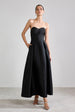 Encante-se com este elegante vestido midi confeccionado em tecido acetinado, perfeito para ocasiões especiais. A modelagem tomara que caia valoriza o colo e os ombros, trazendo um toque de sofisticação e feminilidade ao visual.